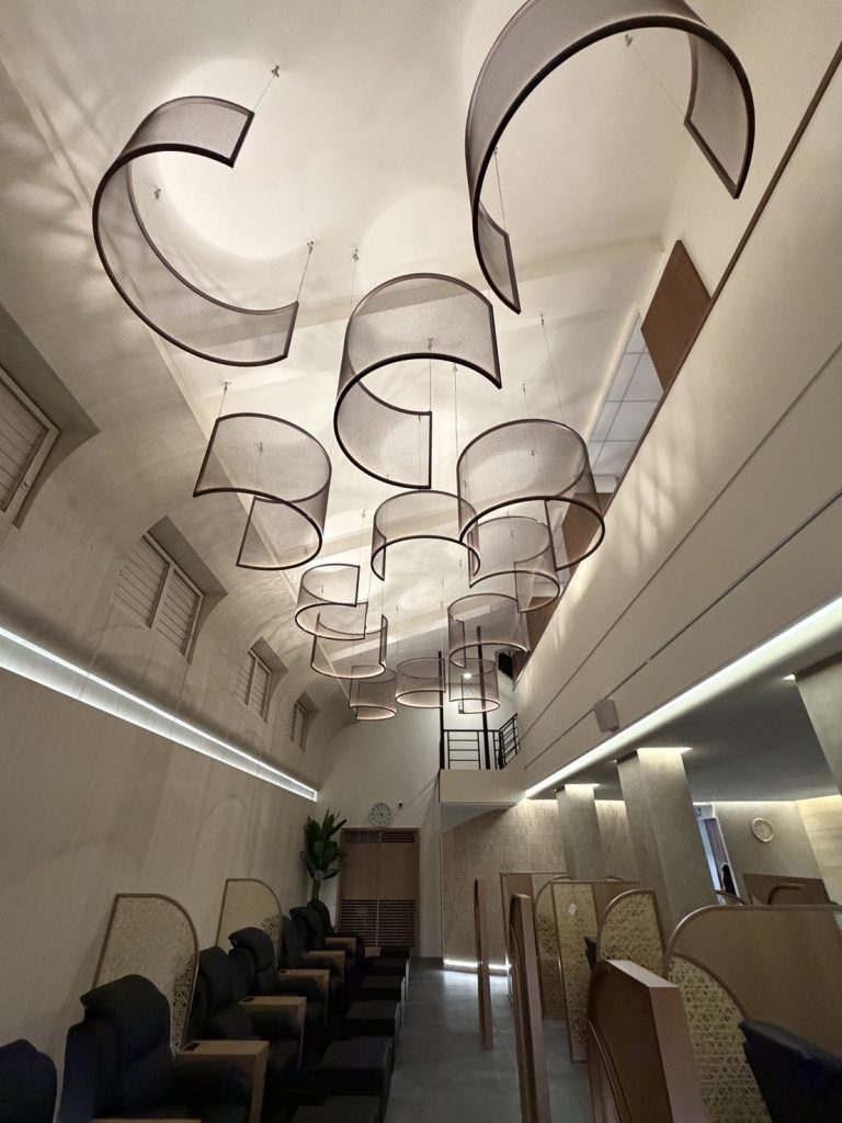 本館全新裝潢以「溫潤、潔淨、舒適」為核心,採用大地中性色系與木質語彙,搭配柔和間接照明,讓空間在視覺上更安定、在體感上更放鬆。挑高場域以造型吊燈形成清晰的層次感,兼具辨識度與沉靜氛圍,提升整體質感而不流於浮誇。
